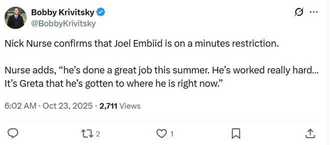 无奈的是,过去两年恩比德连续遭遇膝盖重伤打击,先是在24年1月份遭遇左膝半月板损伤长期缺阵,接着在25年3月份再次因左膝伤情赛季报销,并于4月份接受左膝关节镜手术。