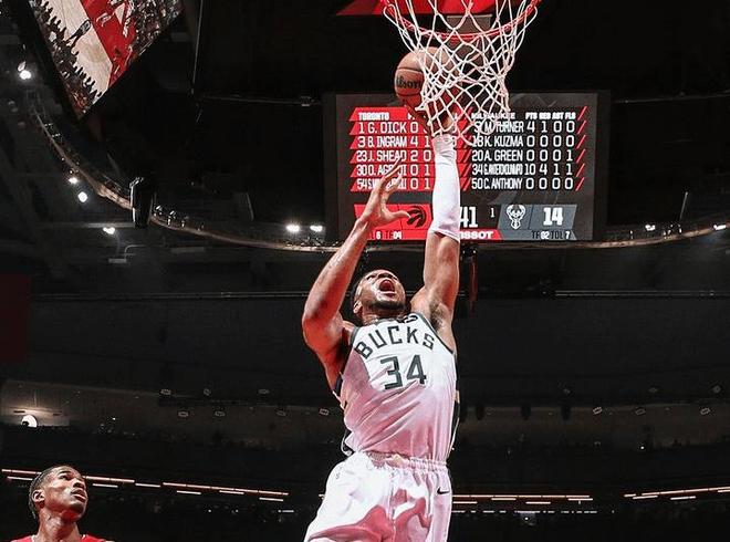 第五个,就是字母哥了。前两场场均34.0分17.0篮板6.0助攻,场均篮板联盟第一。首战他仅用26分钟就轰出37分14篮板5助攻,第二场又爆砍31分20篮板7助攻。投篮命中率合计67%,就连最不擅长的三分命中率都达到60%,字母也成为NBA历史上首个,赛季前两场比赛均砍下至少30分10板5助攻而且命中率过60%的球员。你有没有这样一种感觉,文班亚马单场拿个40+15,会令人眼前一亮,而字母哥拿个30+20,40+15这样的数据,却觉得有些稀松平常,这就是来自字母的统治力。因为文班确实还没达到场均30+的水平,而字母早就达到了。