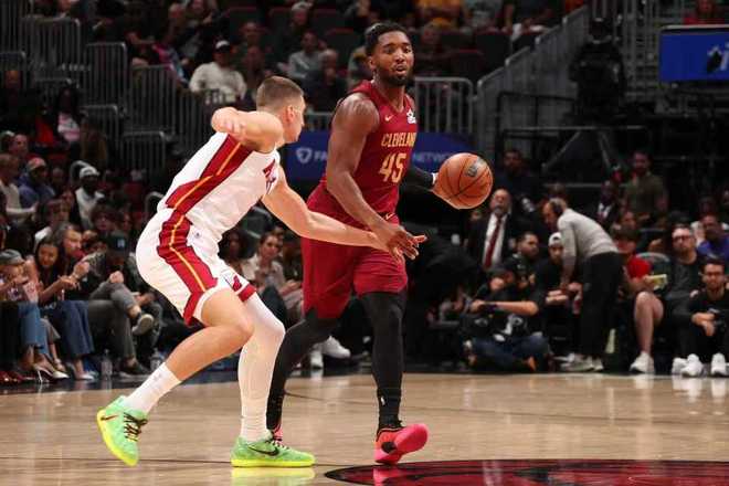 骑士:米切尔28分15篮板8助攻,亨特23分,莫布利21分11篮板5助攻,阿伦14分7篮板,加兰11分,梅里尔12分。