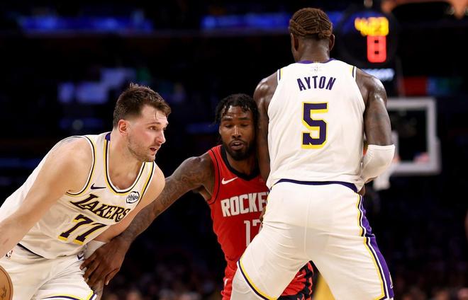 这场比赛,湖人篮板球被火箭吊打,全队只抢到25个篮板,而火箭抢到48个篮板,比湖人多抢到23个篮板。湖人第一节丢了37分,首节落后12分。这一战,东契奇迎来复出,里夫斯回到首发,球队使用了常规首发——东契奇、里夫斯、詹姆斯、八村垒和艾顿。
