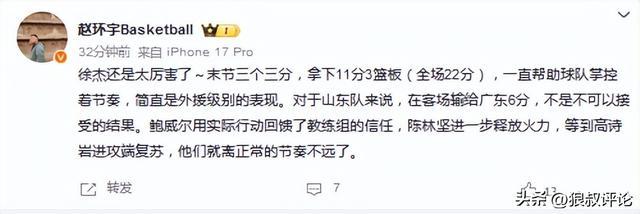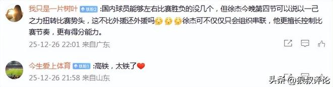 有球迷点评:“国内球员能够左右比赛胜负的没几个,但徐杰今晚第四节可以说以一己之力扭转比赛势头,这不比外援还外援吗?徐杰可不仅仅只会组织串联,他更擅长控制比赛节奏,更有得分能力。”