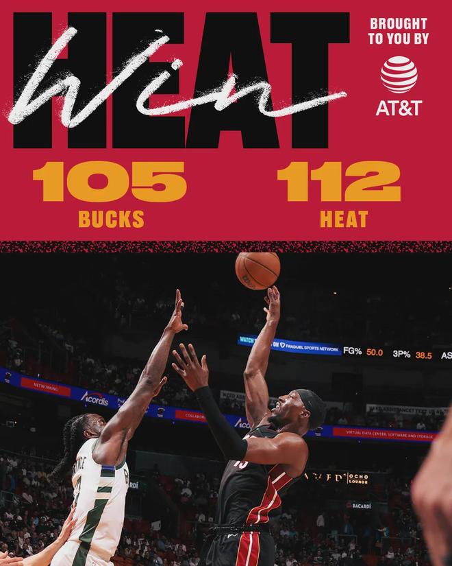 全场结束,热火112-105击败雄鹿,取得7连胜。拉尔松28分6板6助、亚库乔尼斯18分7板2助2断。字母哥31分6板3助、波蒂斯19分5板、罗林斯16分5板10助。阿德巴约投篮20中6,三分5中0,罚球13中9,拿到21分8篮板2助攻。