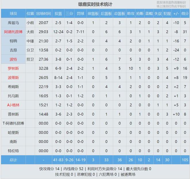 字母哥又是尽力局,首节8投4中得到10分3篮板,得分占了全队的近一半。但雄鹿全队三分只有5中1,首发当中有3人得分挂零。备受关注的阿德巴约,第一节5中2拿到4分0篮板。第二节罗林斯和普林斯站出来,雄鹿单节三分7中4。
