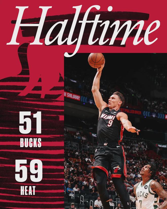 雄鹿单节30-28追回2分,半场战罢,热火59-51领先8分。热火最猛的是拉尔松,上半场投篮4中3,三分1中1,罚球6中6,砍下13分3篮板4助攻。字母哥14中7拿到18分4篮板1助攻,阿德巴约9中3,仅得6分2篮板1助攻1失误。