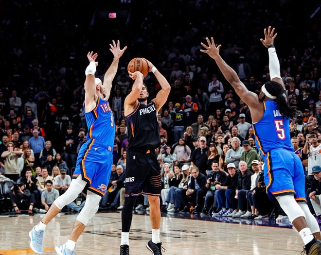 本赛季NBA常规赛进入最后1个月冲刺期,西部局面挺复杂。雷霆和马刺稳坐第一和第二无需多言,但从第三名湖人起,到第七名太阳,包括了火箭+掘金+森林狼,这五支球队,都没有拉开差距。快船从西部垫底一路北伐到西部第八,暂时也要歇一歇了,就看前面3-7位谁先直线滑落先犯错。实话实说,前面四支球队,我们经常分析,唯独经常忽略掉太阳,因为他们没什么大牌球星,就一个布克。这支球队仔细看他们高阶数据,真的很有趣。赛季前66场比赛赢下39场,胜率59%,他们本赛季有望扮演搅局者身份!