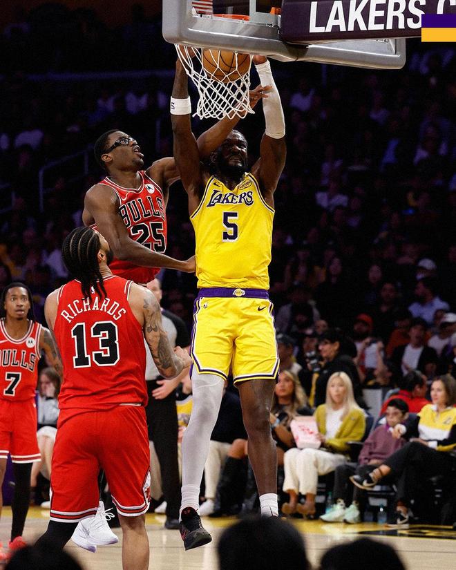 其次,詹姆斯的复出并没有去抢东契奇和里夫斯的出手。本场比赛,东契奇出战36分钟,31投17中,其中三分球14投9中,得到51分10篮板9助攻3抢断1封盖,单场51分创下湖人生涯新高。里夫斯出战38分钟,20投13中,其中三分球7投4中,得到30分5篮板7助攻1抢断,连续两场比赛拿到30+得分,相对的,詹姆斯全场只出手了13次,命中7球,拿到18分7篮板7助攻2抢断1盖帽。正如雷迪克所说,詹姆斯清楚湖人需要东契奇和里夫斯在进攻端打出好状态,就需要给他们大量的持球权,为此詹姆斯不惜让出一部分自己的球权,让东契奇和里夫斯在进攻端全力发挥。