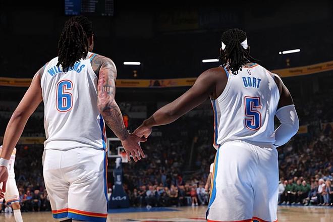本场比赛中,雷霆虽然最终比较顺利地取得了胜利,但是球队的先发侧翼大闸吕冈茨-多尔特(Luguentz Dort)的表现实在是令人大跌眼镜。多尔特全场出场17分39秒,投篮4中0,三分线外2中0,罚球4中3,得到了3分1抢断的数据,正负值为-6。多尔特在本场比赛中在攻防两端的表现都是惨不忍睹的水平,他的进攻效率并不理想,甚至没有命中1球,仅靠罚球得到了可怜的3分。不仅如此,多尔特作为一名防守大闸,甚至在防守端的表现也是令人非常失望的,可能也是因为表现实在是太差了一些,多尔特也是没有办法得到球队教练组的信任,他的出场时间也是非常有限的。不过反过来说,也就是因为多尔特的出场时间受限,雷霆才会最终比较顺利地拿下比赛的胜利。