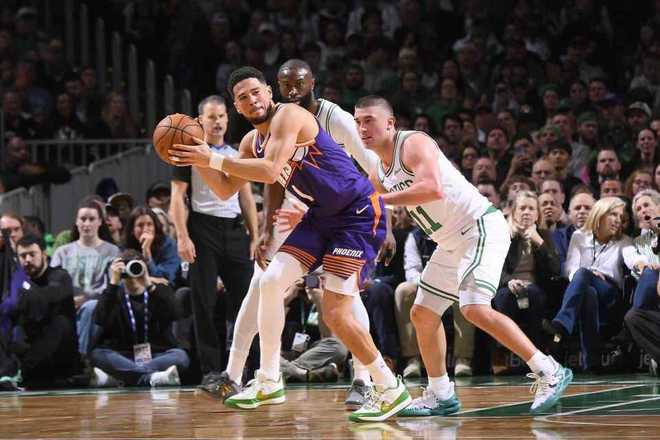 中场休息回来,双方进攻火力下滑第三节均是单节不足30分,凯尔特人被追到70-69仅领先1分,凯尔特人一波8-0攻势扩大9分优势。布克率队追到差5分,谢尔曼三分命中,布克持续里突外投得分,凯尔特人被追到88-86仅领先2分。普里查德三分命中,布克第三节爆发得到16分,凯尔特人单节26-25净胜1分,三节结束凯尔特人91-86领先太阳。前三节比赛,太阳三分31中10,布克19中13得到35分5助攻、格林17分与阿伦12分;凯尔特人三分34中16,布朗23分、怀特19分、塔图姆17+6+4与普里查德14分。