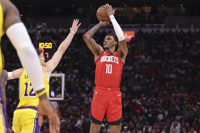 下半场比赛,伊森突破被里夫斯切掉,阿门反抢回来上反篮打进,斯玛特强怼内线挤开小贾打进上篮,阿门跟进接卡佩拉传球暴扣,小贾持球单打艾顿翻身中投潇洒命中,里夫斯加速上篮拿2分,阿门对上东契奇跳投也进,老詹借助掩护到罚球线跳投拿2分止血,艾顿顺下上篮造卡佩拉犯规罚球二中一,老詹顶着小贾命中3分,伊森上篮带罚球连拿3分,回来东契奇中投、快攻2+1一人连拿了5分,分差剩4分!伊森罚球线中投拿2分,杜兰特撞到里夫斯被吹一级恶意犯规,湖人借机拿了4分!10分的分差瞬间来到2分,火箭暂停。