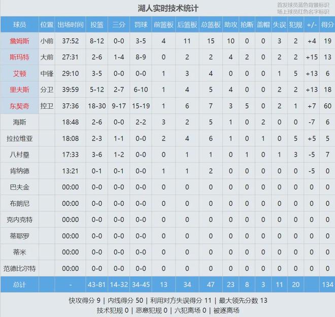 阿德巴约连续8场命中率低于五成,防守端被东契奇不断点名。湖人豪取8连胜,最后看看数据: