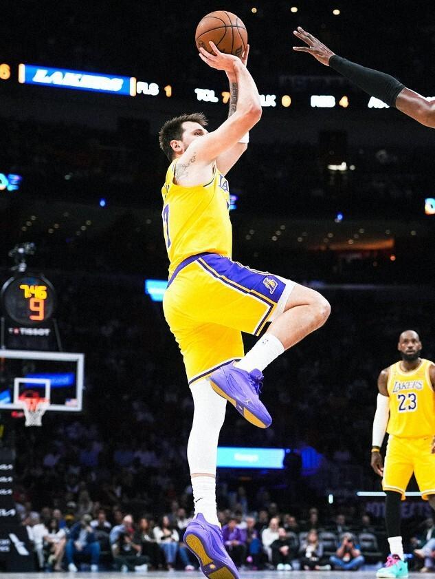 湖人(45-25):东契奇60分7篮板3助攻5抢断,詹姆斯19分15篮板10助攻,里夫斯18分4篮板4助攻,斯玛特13分。