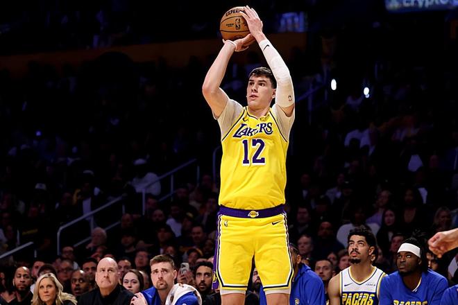 本场比赛中,湖人的替补锋线新星杰克-拉拉维亚(Jake LaRavia)还是保持了自己超高的水准。拉拉维亚全场出场10分16秒,投篮4中2,三分线外1中1,得到了5分3篮板2助攻1抢断1盖帽的数据,还有2次犯规,正负值为+3。拉拉维亚在进攻端虽然出手次数不多,但还是得到了不少的分数,还命中了一记三分,也算是能够起到一定的作用的。拉拉维亚不仅在进攻端表现不错,他在前后场篮板争抢方面的积极性以及他在防守端的活力也是值得肯定的。拉拉维亚在本场比赛中的出场时间其实并不多,但是他在这种情况下还是能够打出这样的表现,也能够说明他在场上的作用是非常突出的。