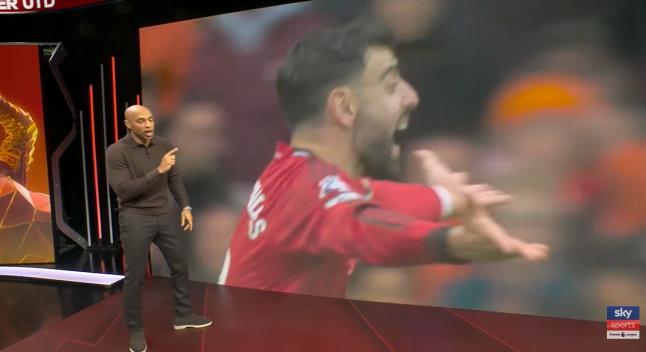 英超第30轮,曼联3-1战胜了维拉,赛后,亨利在天空体育的节目中称赞了B费本场比赛的精彩表现。